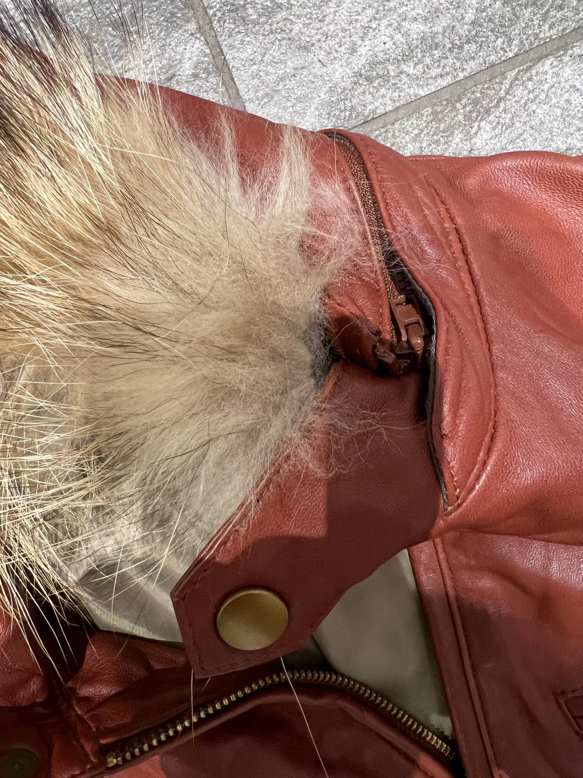 Lambskin leather, Raccoon fur hood